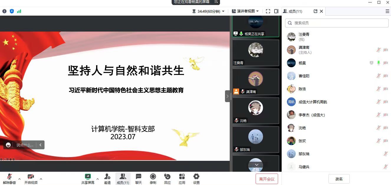 智能科学与技术教研室党支部开展学习贯彻习近平新时代中国特色社会主义思想主题教育-坚持人与自然和谐共生