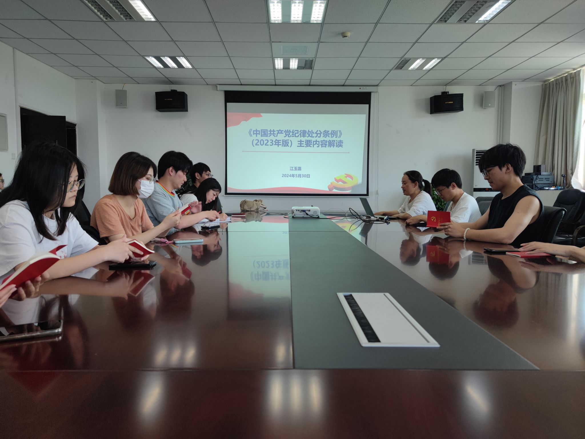 2024年5月30日,本科生第二党支部书记江玉菡给支部党员上了《中国共产党纪律处分条例》(2023年版)主要内容解读为主题的党课。本次党课学习以学习《中国共产党纪律处分条例》为中心,讲解了《条例》修订的主旨要义以及关于《条例》修订后的学习理解。学习之初江玉菡介绍了《条例》修订的主旨要义,总共有五点,一是严明…[详细] 2024年05月31日