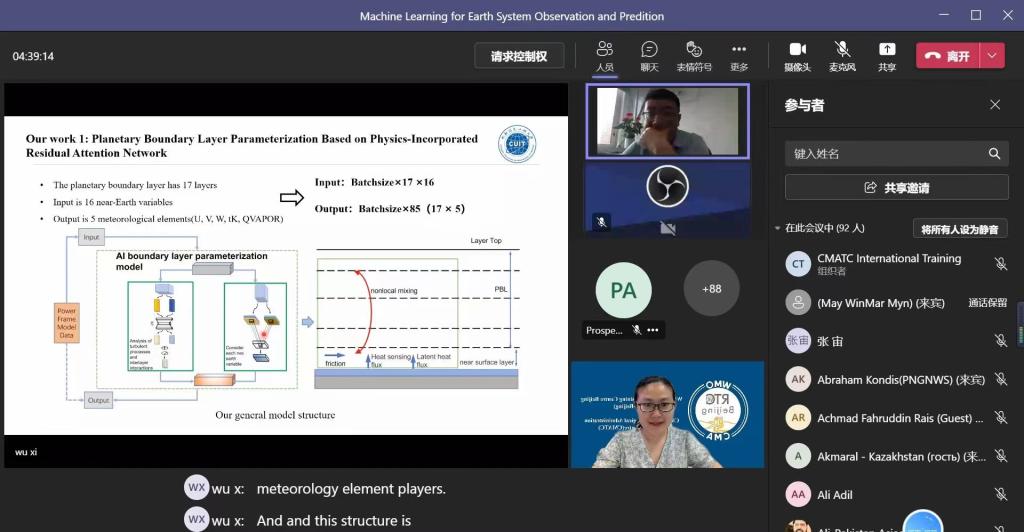 院长吴锡教授受国家气象局干部学院暨世界气象组织北京培训中心(WMO RTC BJ)邀请,在WMO举办的第一期数值预报远程培训班,就AI在预报"芯片"技术NWP中的应用前沿进行授课,来自76个国家和地区的277名水文和气象从业人员参与。