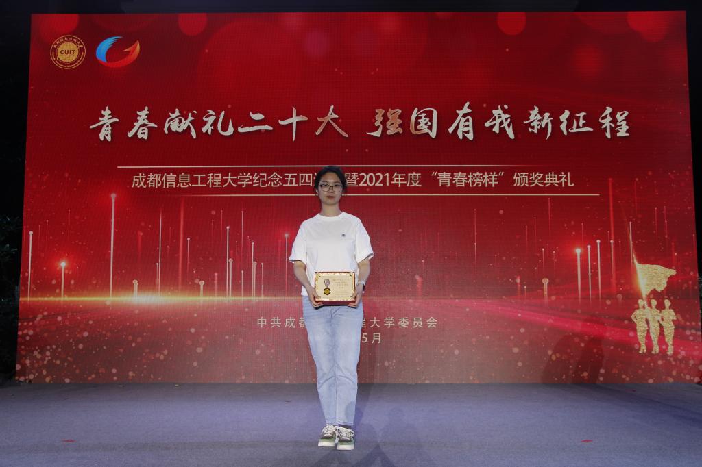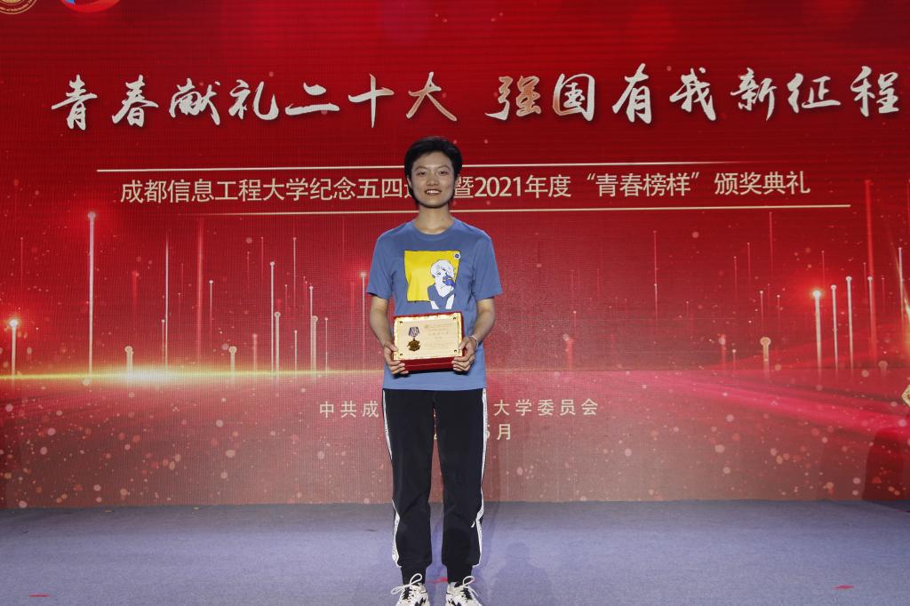 数字媒体技术专业2018级1班学生,连续三年获得特等奖学金,连续两年获得国家奖学金。在2020年度“青春榜样”评选活动中以最高票数获得“十佳团支部书记”荣誉称号,在2021年度“青春榜样”评选活动中又以最高票数获得“十佳青年学生”荣誉称号,同时获得“学习之星”荣誉称号。