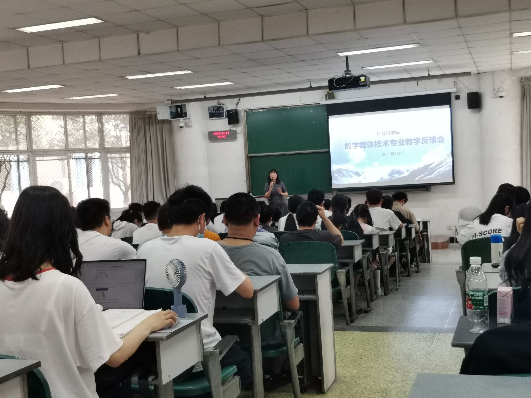 于6月1日在4112教室召开全体数字媒体技术专业学生大会,学院党委书记陈敏、教学副院长朱烨、教研室主任符颖老师及各年级辅导员参加会议。