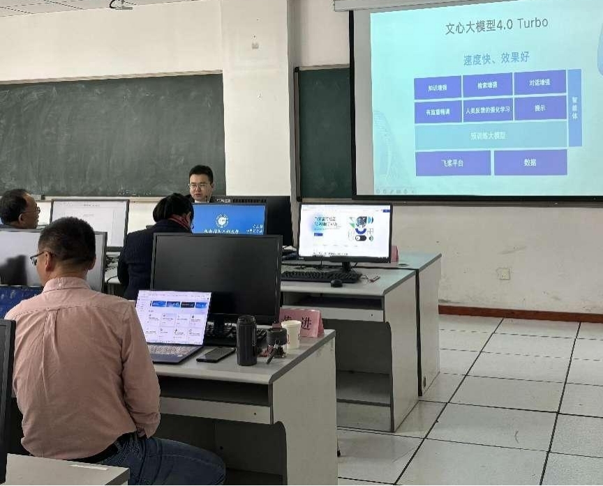 在志学楼H5302开展了主题为“大模型时代的AI通识教学”的专题讲座。本次讲座邀请百度飞桨高级产品运营经理、西南区域负责人黄凯先生,百度飞桨布道师、西南交通大学副教授黄进作为主讲嘉宾,讲座由学院实验室主任刘仕筠老师主持,学院副院长朱烨及其他专任教师聆听讲座。