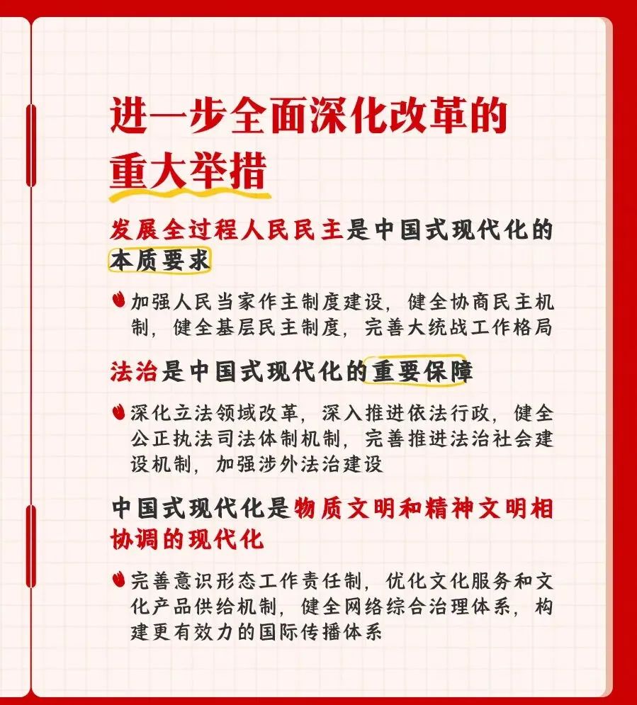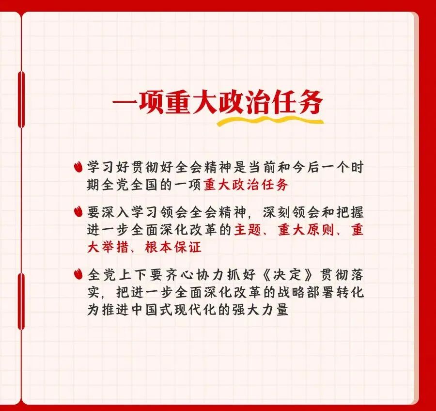 您所在的位置: 疯AV >> 党建工作 >> 学习资料 >> 正文 学习资料 党的二十届三中全会精神知识点梳理 党的二十届三中全会是在以中国式现代化,全面推进强国建设、民族复兴伟业的关键时期,举行的一次十分重要的会议。进一步全面深化改革,总目标是什么?要贯彻哪些原则?紧扣中国式现代化,部署了哪些重大举措?一组笔记为你梳理。 上一条:合格党员标准 【关闭】