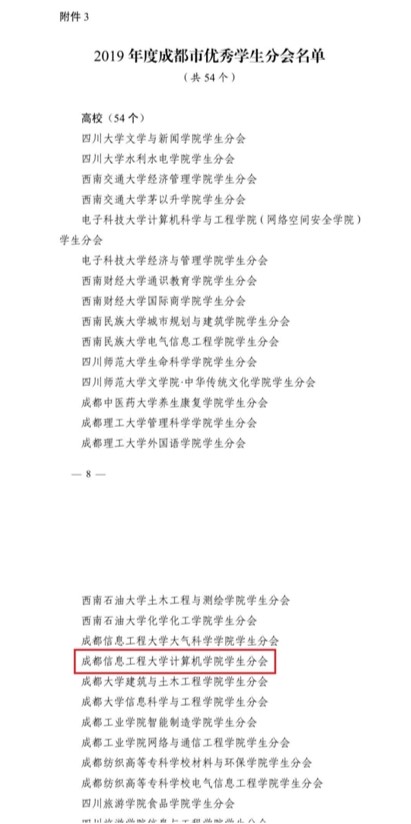 近日,成都市学生联合会下发《关于表扬2019年度成都市优秀学生会 (研究生会)、优秀学生分会(研究生分会)、 优秀学生会(研究生会)工作人员的通报》,经组织申报、学校初评公示、市级评审,疯AV