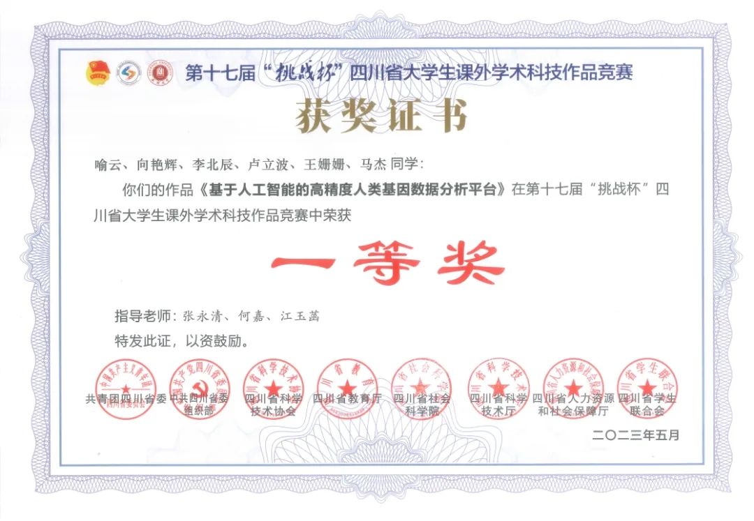 学子的参赛作品《基于人工智能的高精度人类基因数据分析平台》(指导老师:张永清、何嘉、江玉菡),在1035件优秀作品中脱颖而出斩获一等奖(全省共109项),该项成绩是疯AV