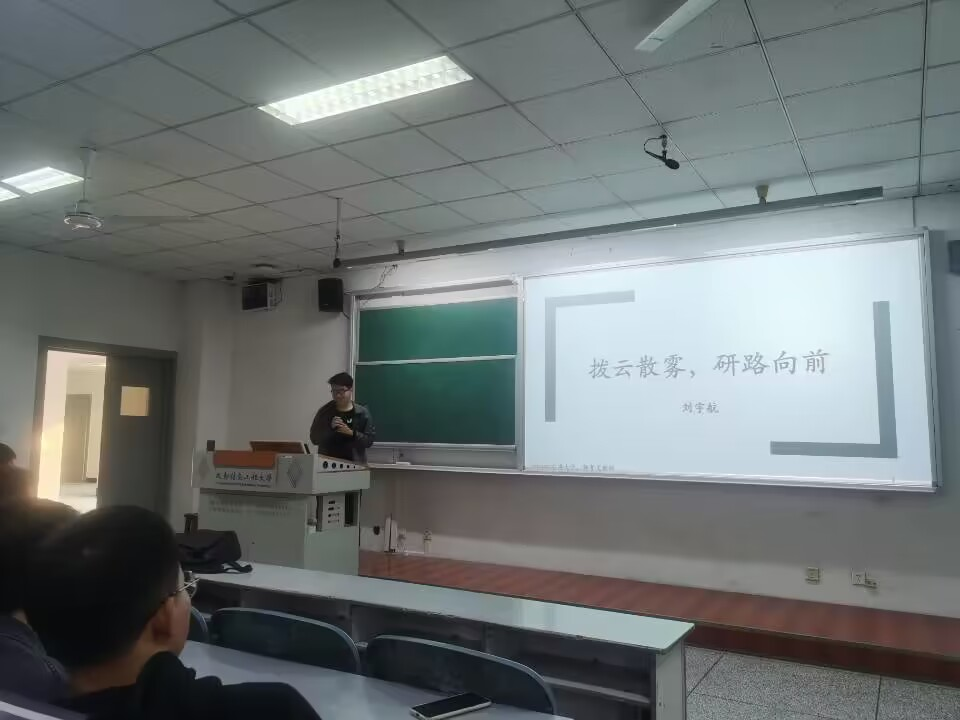 刘宇航学长带来了“拨云散雾,研路前行”的主题分享。首先,学长幽默风趣的分析和解答了“为什么读研”和“研究生为什么要进行研究”这两个重要问题,引发了同学们的深度思考。同时,学长通过自身经历和实践,分享了在读研期间可能面临的问题及对应的解决方案。学长的分享让同学们对研究生阶段的工作和生活有了更加深入的理解,帮助同学们建立了前进的信心。