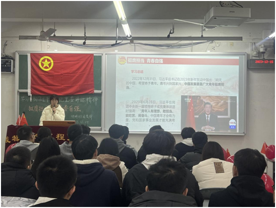 党委副书记厉威成分别对专题学习进行了总结并提出要求,新时代的大学生应积极学习贯彻习近平新时代中国特色社会主义思想,加强理论学习,落实行动实践,立足自身,努力学习,在担当中历练,在尽责中成长,在推进强国建设、民族复兴伟业中接续奋斗!同学们也表示,作为新时代青年,当铭记历史,把握现在,着眼未来,积极担负责任使命。坚定不移地听党话、跟党走,做有理想、敢担当、能吃苦、肯奋斗的新时代好青年!