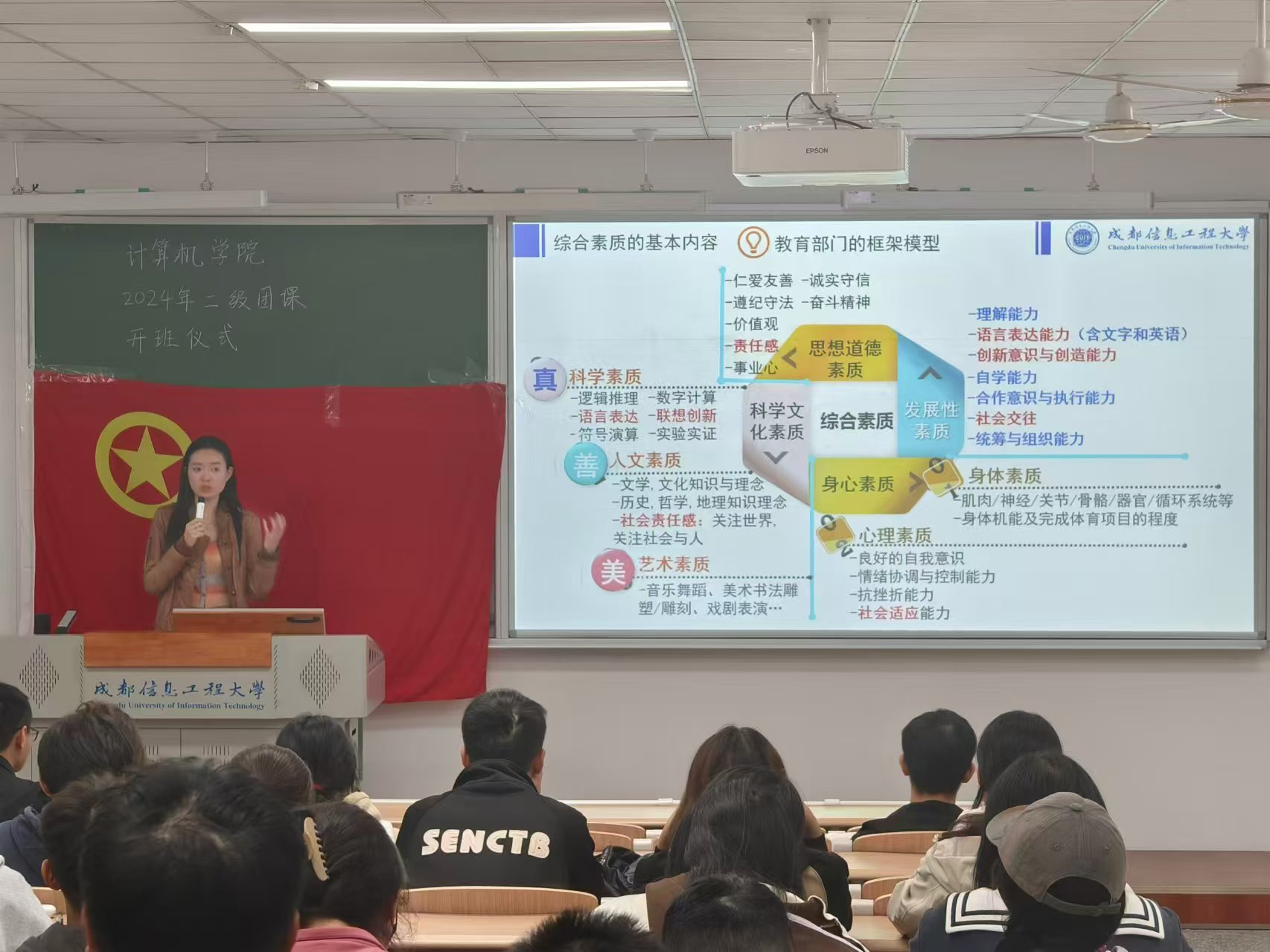 于2024年11月11日19:00在H1208教室举办2024-2025学年二级团校开班仪式暨第一次团课。本届团校开班仪式由学院团委书记岳旭媛主持、讲授。