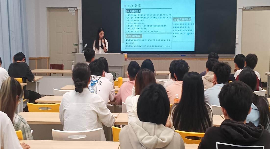 在H4101教室成功举办 “繁星求知・逐梦学途” 专业学习与研考经验分享会。本次活动邀请到2021级成功考研上岸中国人民大学的王木灼、华中师范大学的杨秀两位优秀学子,以及资深考研规划指导师王亮老师作为主讲嘉宾,学院党委副书记倪涛、辅导员代表及58名学生共同参与了此次分享会。本次活动由三年级辅导员余弘丽老师主持。