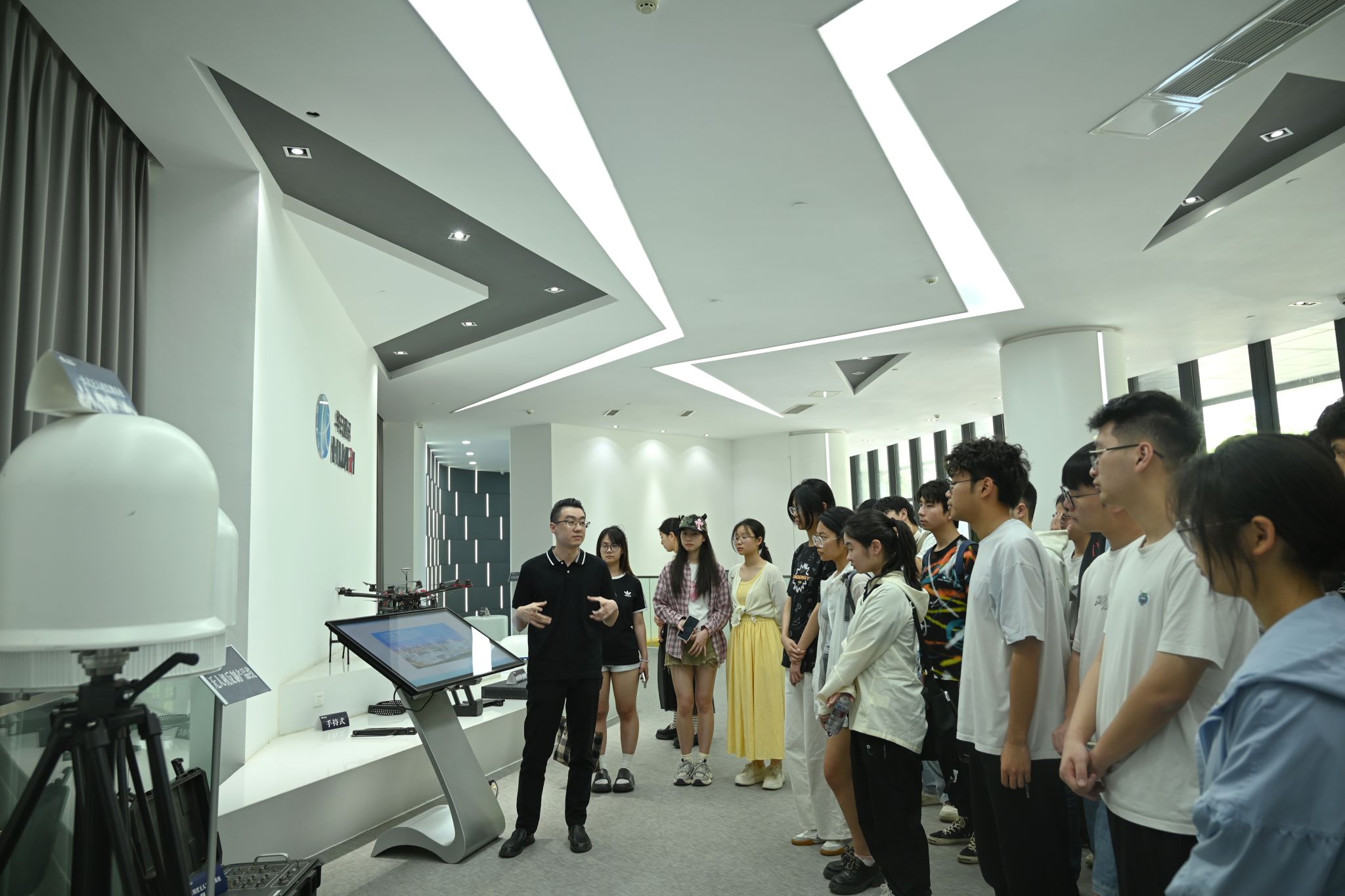 成都空御科技有限公司内,开放式研发工位上工程师专注编程,技术讨论区交流热烈,专利墙与荣誉展示柜彰显着企业在无人机反制及低空安全管控领域的技术实力。讲解员以生动案例讲述企业从创业到成为行业领军者的历程,让同学们感受到创新与坚持的力量。展厅中,企业自主研发的“降鹰”反无人机系统与全域数字化低空安全管控平台等核心产品引人注目。讲解员通过介绍和展示,深入浅出地讲解了这些产品的工作原理、应用场景,突出了在国家各个领域发挥的重要作用。同学们积极提问,深入了解无人机反制技术的原理、未来发展趋势。