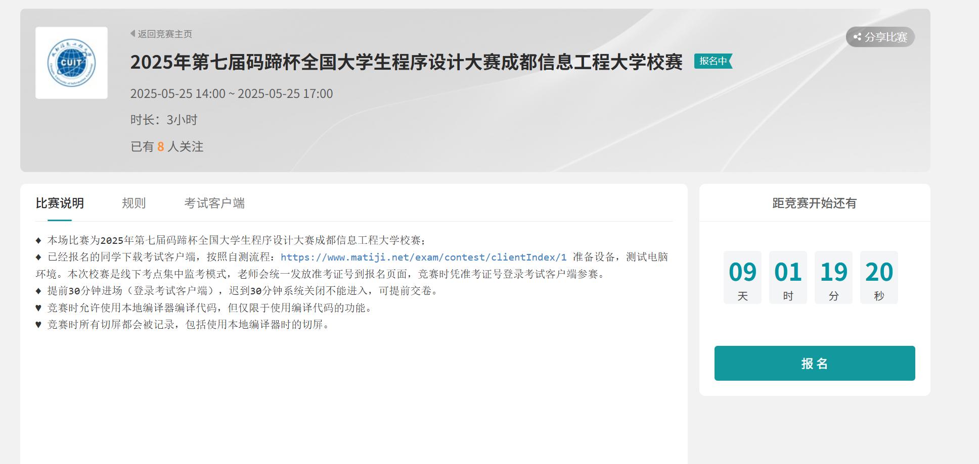 报名链接://www.matiji.net/exam/contest/contestdetail/245。报名入口截图如下:
