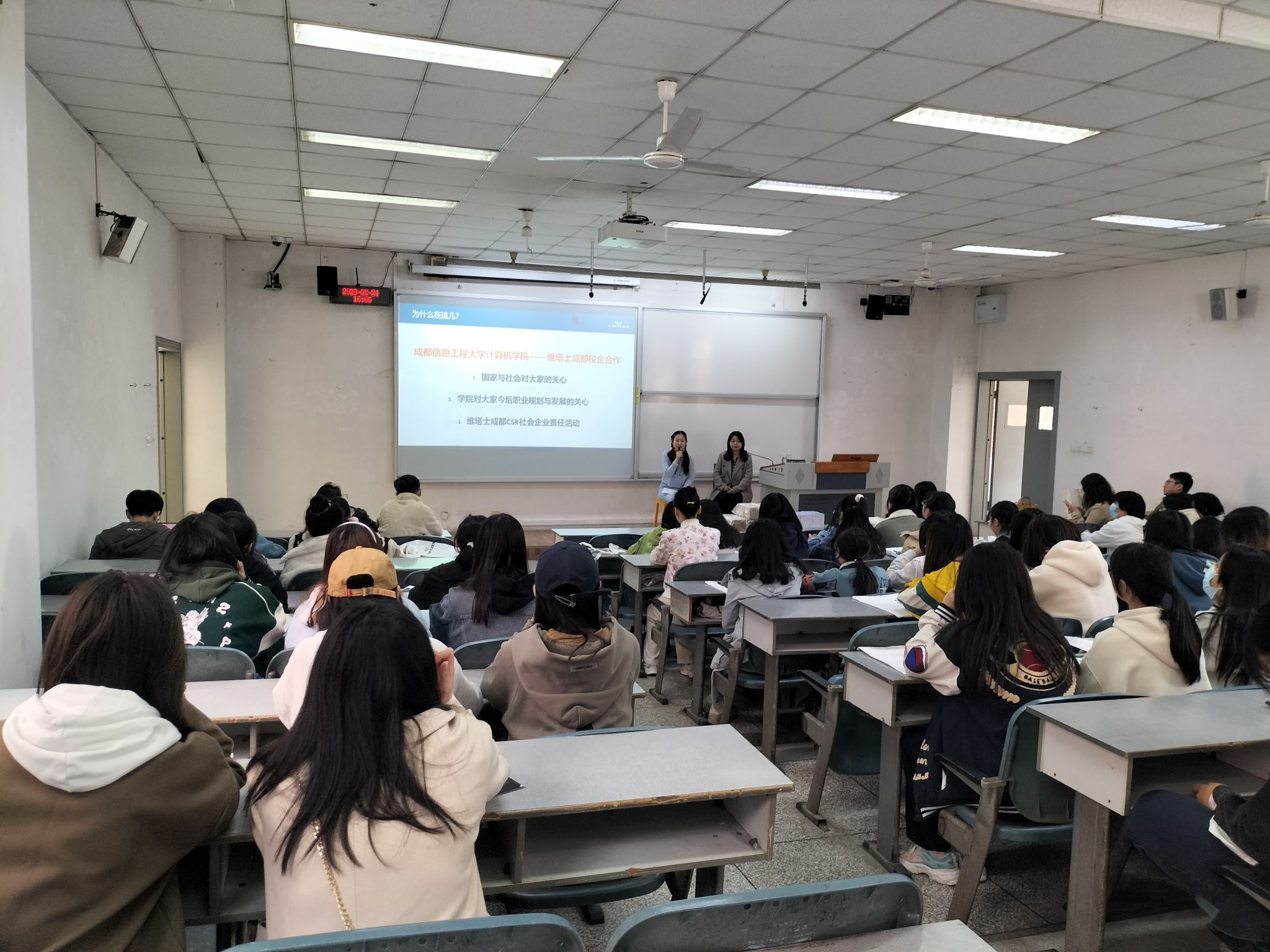 2023年3月24日,下午3点50,维塔士成都游戏行业女性职业发展主题系列访校活动在H1101准时开始。维塔士成都校企合作部门与CSR社会企业责任部门为了吻合国家重大需求,围绕国家重大战略中的“她力量”,探索游戏行业的女性人才建设,下一代女性人才培养等,希望可以通过游戏行业女性职业发展主题系列访校活动展示游戏行业优…[详细] 2023年03月28日