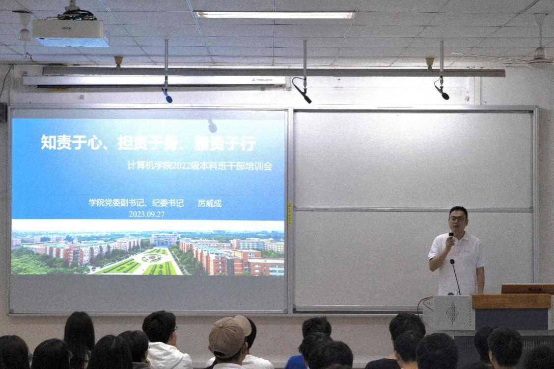 为进一步加强学院学生干部队伍建设,提升学生干部履职能力,9月27日中午,疯AV 在航空港校区H1101教室开展了主题为“知责于心,担责于身,履责于行”的2022级本科新任班干部培训会。培训会由学院党委副书记、纪委书记厉威成主讲,辅导员余弘丽主持,2022级本科全体班干部参加。厉威成首先分析了目前2022级本科班级在…[详细] 2023年09月28日