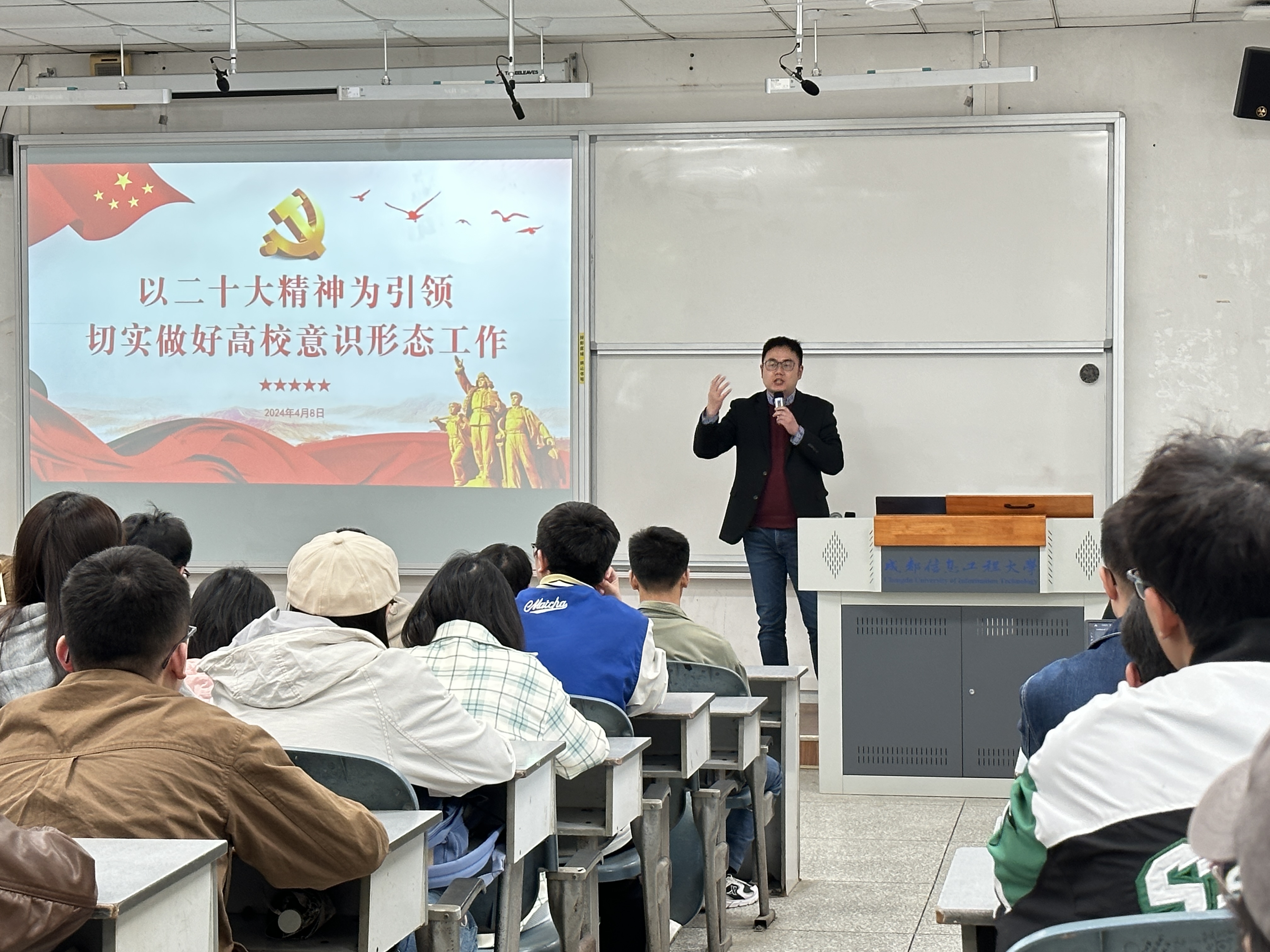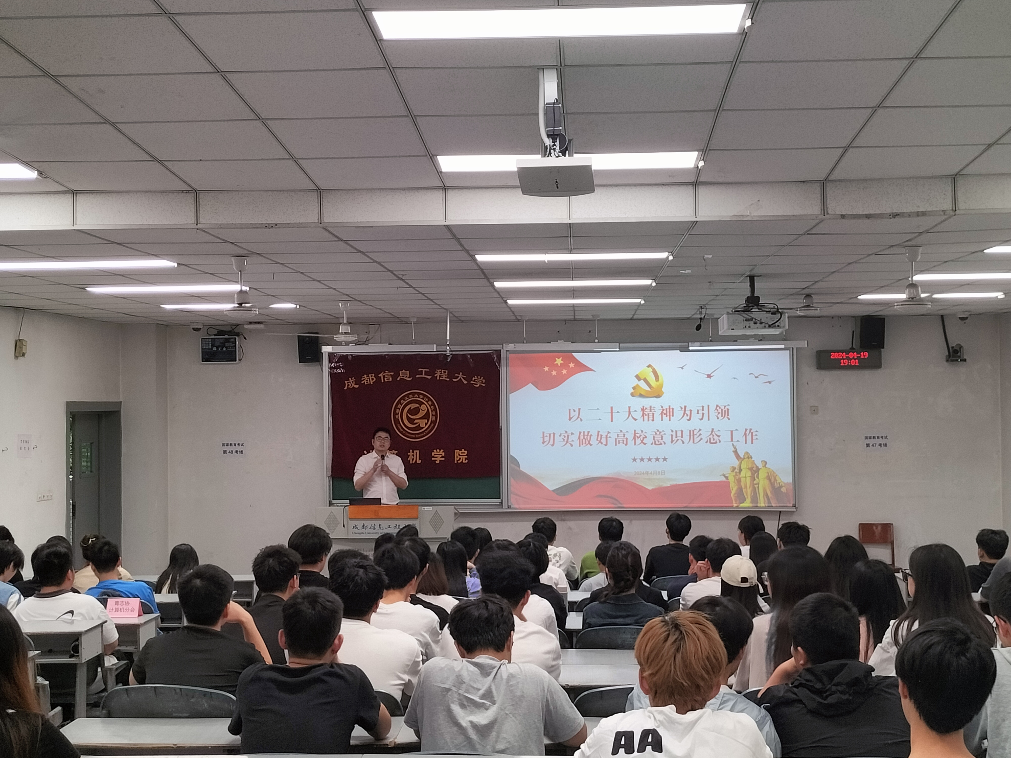 疯AV 学生干部思政教育培训于2024年4月19日晚上19:00在H1201教室准时进行。本次培训由疯AV 党委副书记厉威成主讲,参加培训的有疯AV 团委、学生会、青志协计算机分会的全体学生干部以及2022级与2023级的班长、团支书同学。本次思政教育培训主题为“以二十大精神为引领切实做好意识形态工…[详细] 2024年04月20日
