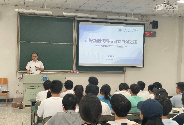 5月17日,学校校长何建新教授在航空港校区二教2106为疯AV 2023级计算机科学与技术专业231-233班学生讲授了主题为“走好新时代科技自立自强之路”的《形势与政策》课,深入剖析了当前科技发展的现状,强调了加快科技自立自强步伐的紧迫性,鼓励青年学子展现担当精神。课堂现场何建新首先讲到,随着新一轮科技革命和产…[详细] 2024年05月20日